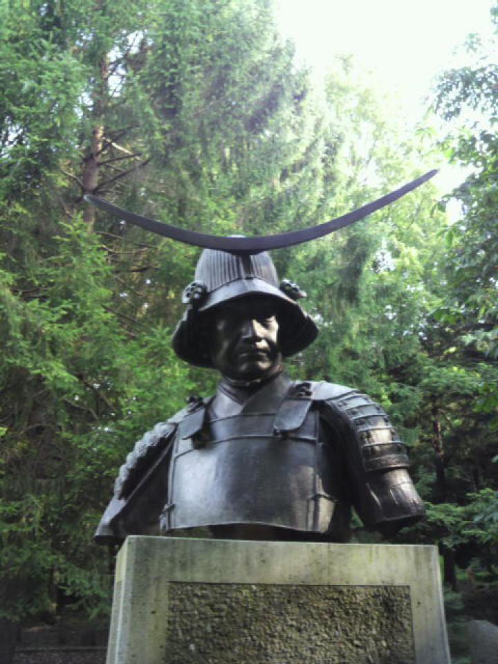 仙台市博物館の館庭にある伊達政宗の胸像です。ここで写真を撮る人は結構多い(^^)