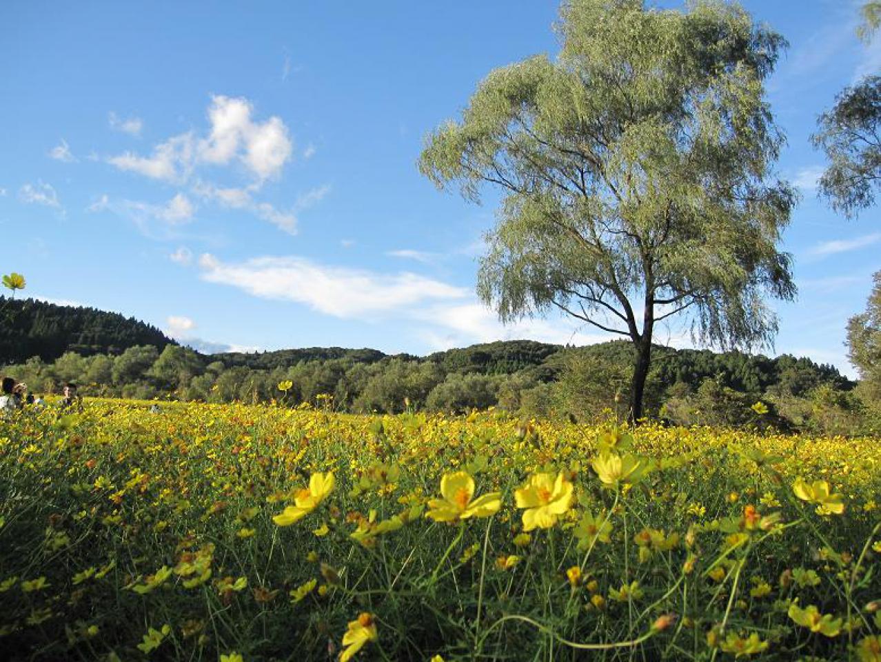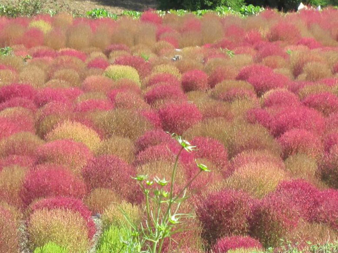 コキアは別名ホウキグサで、実を乾燥させると畑のキャビア「とんぷり」になるそうです。コスモスはまだ1分咲き程度でした。