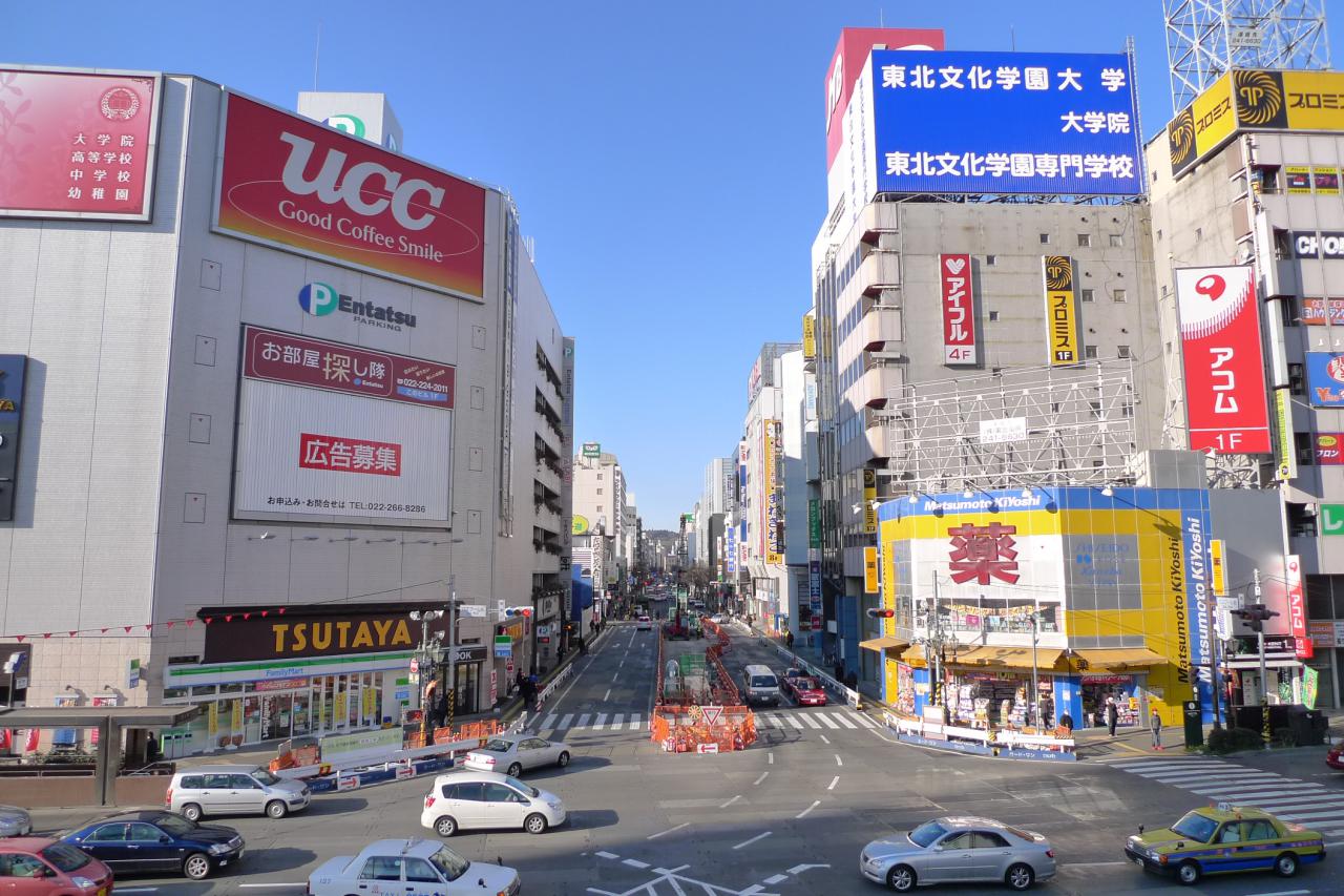 仙台駅ペデストリアンデッキより南町通りを撮影。