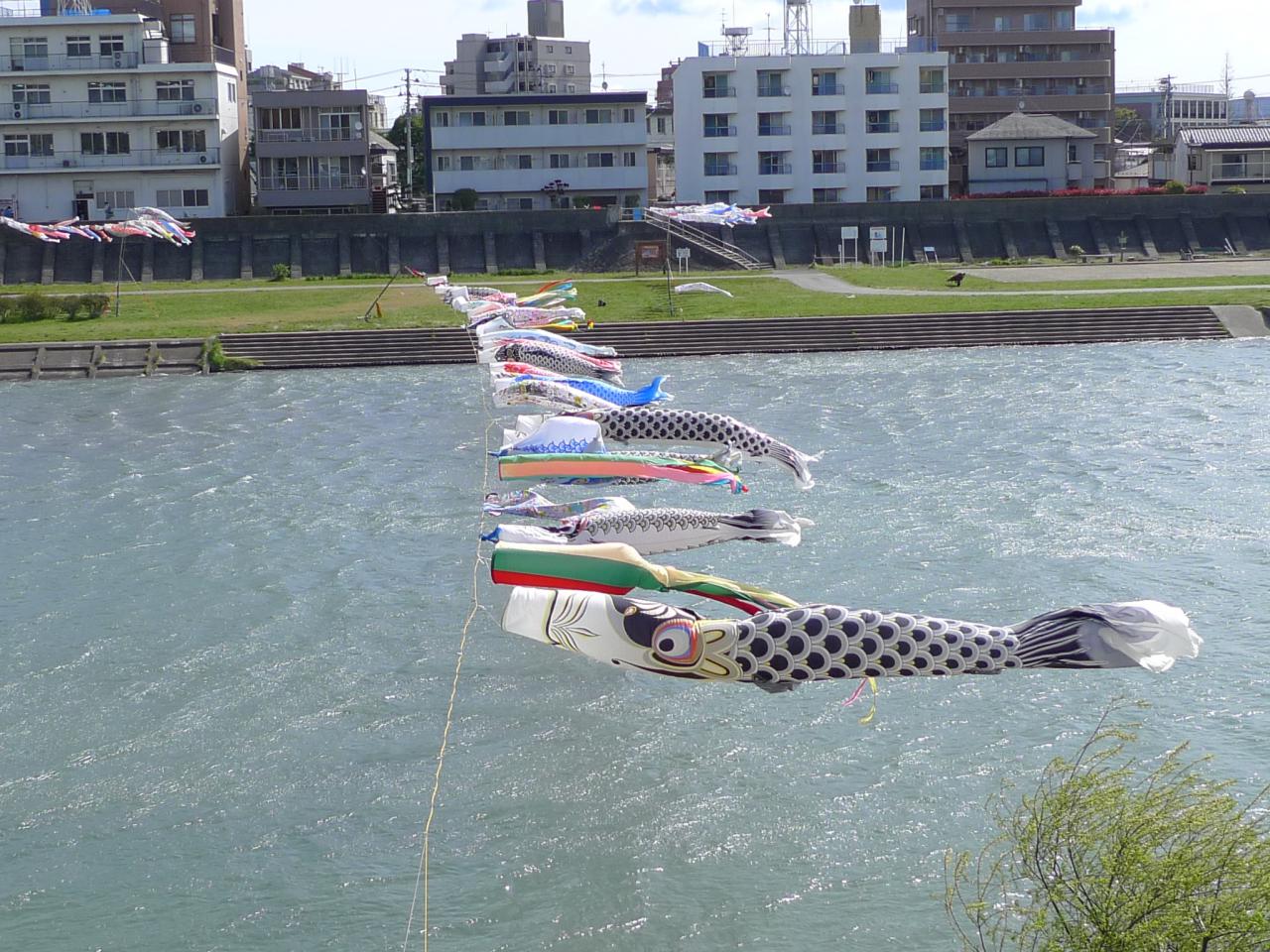 毎年恒例になっている宮沢橋付近のこいのぼりです。