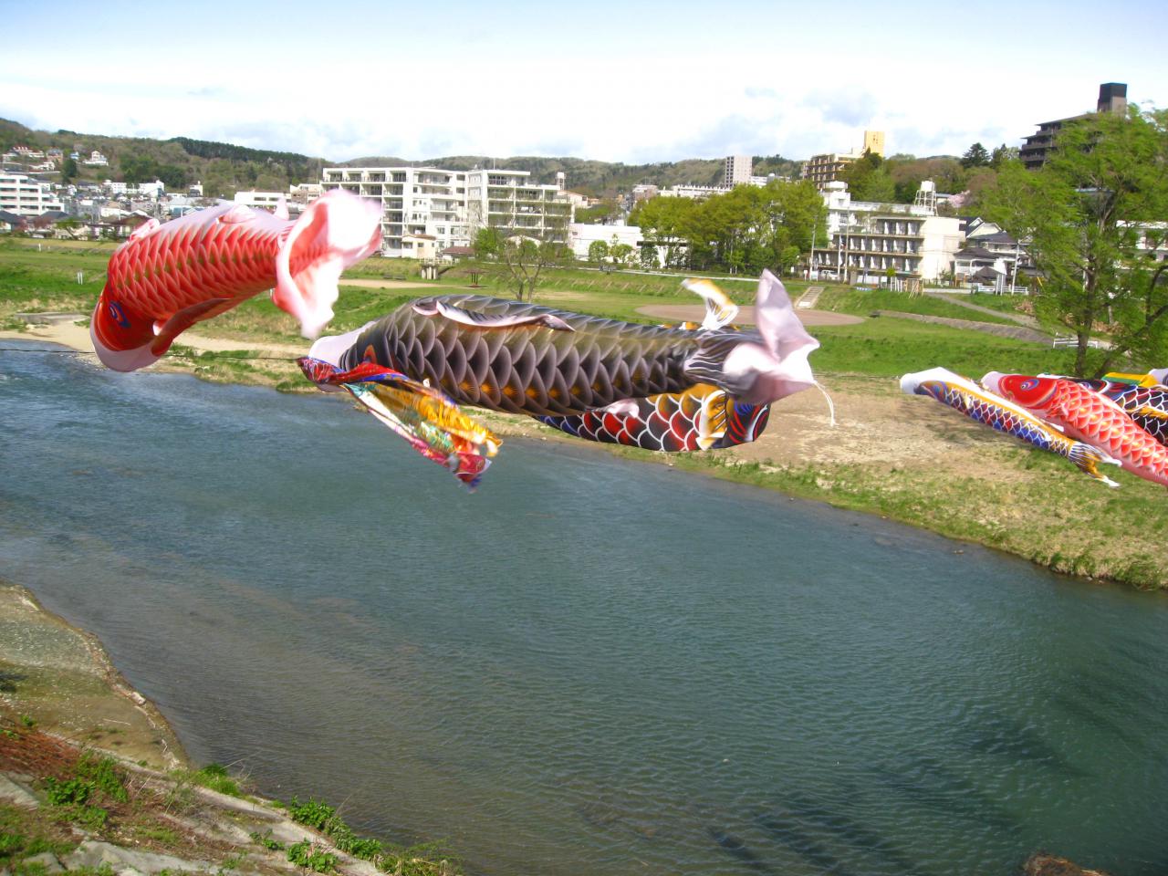 広瀬川の澱橋にもこいのぼりがかけられていました。