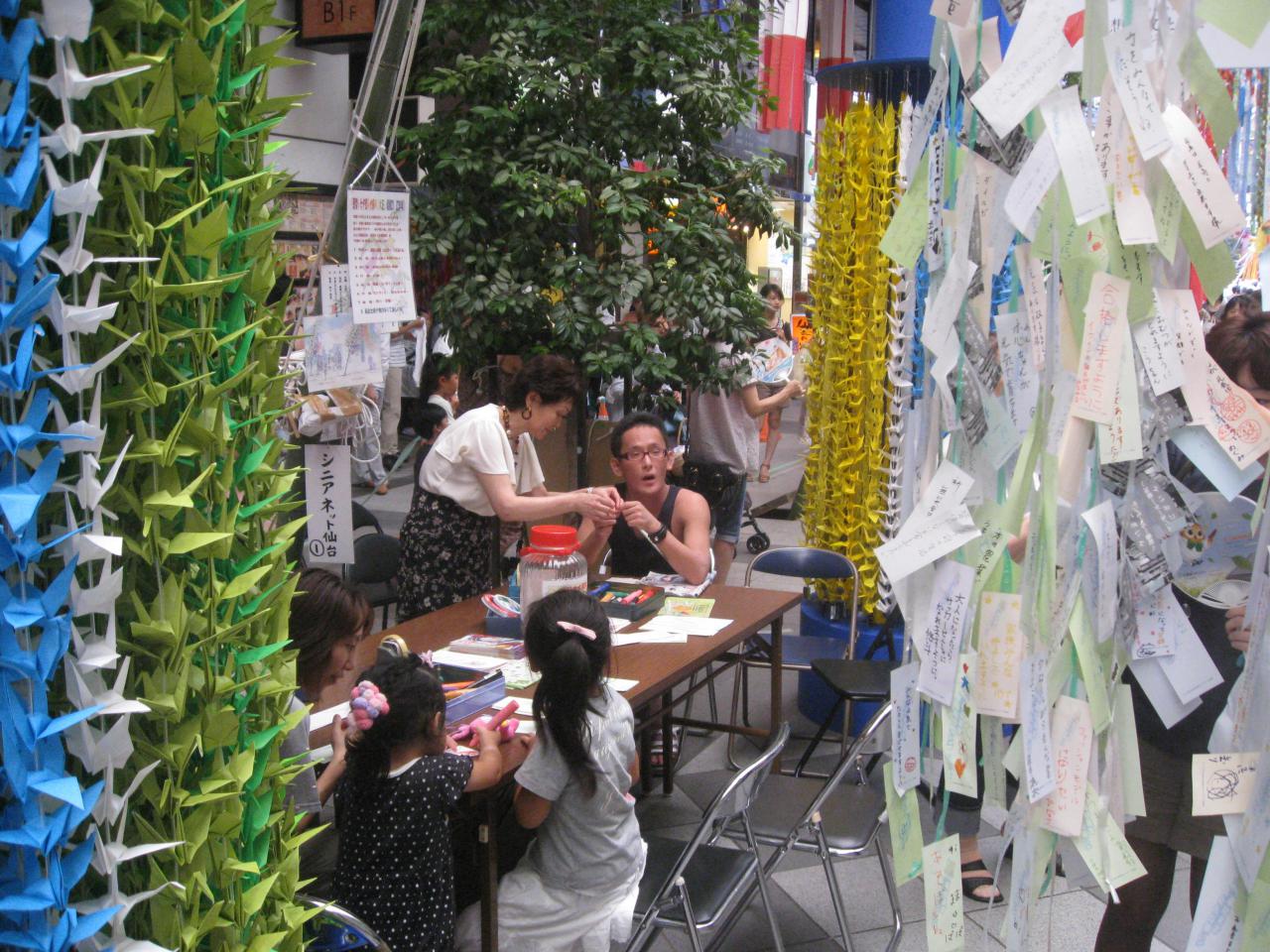 その場でも、たくさんの人が短冊に願い事を書いていました。