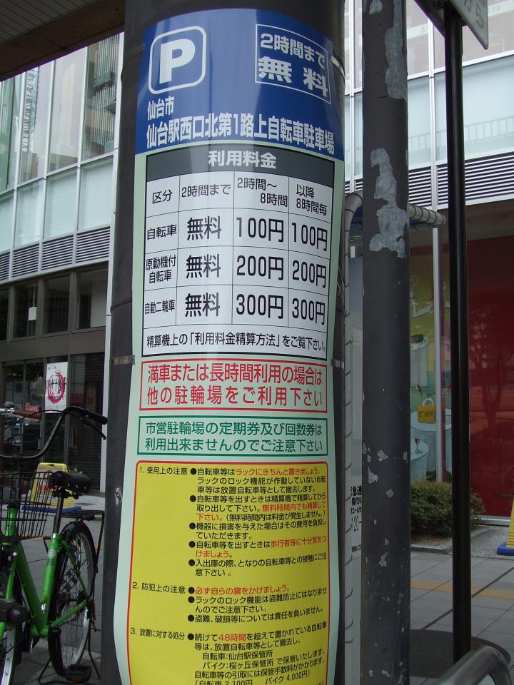 仙台駅周辺に用事がある時に私もよく利用している駐輪場です。2時間まで無料なので大変助かっています。