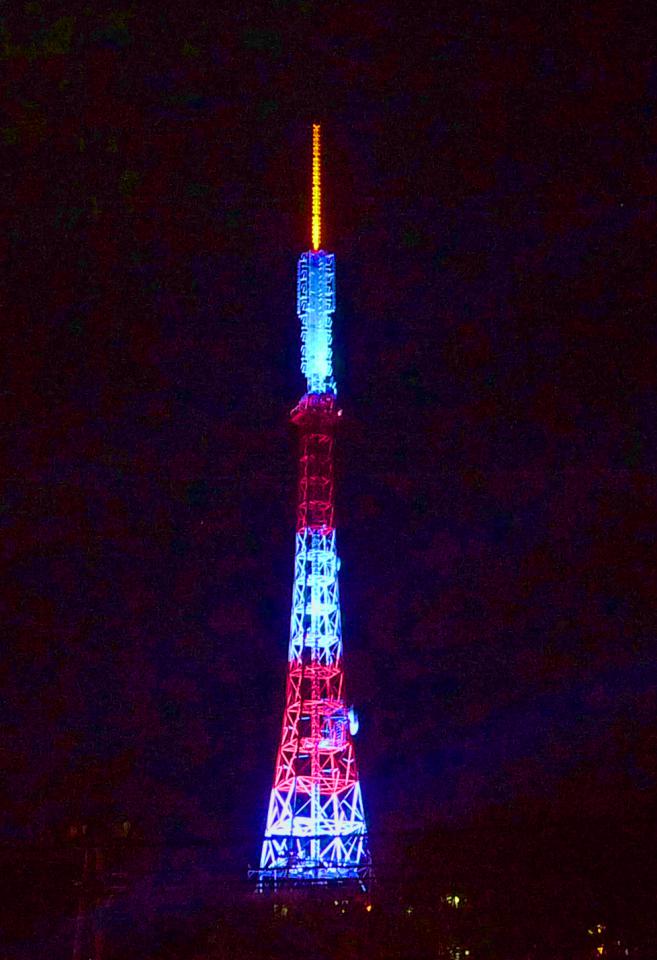 ふと見ると仙台放送のテレビ塔が青くライトアップされていました。