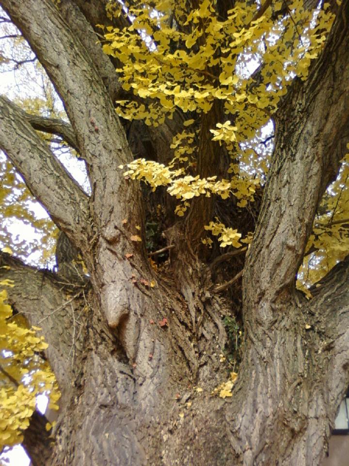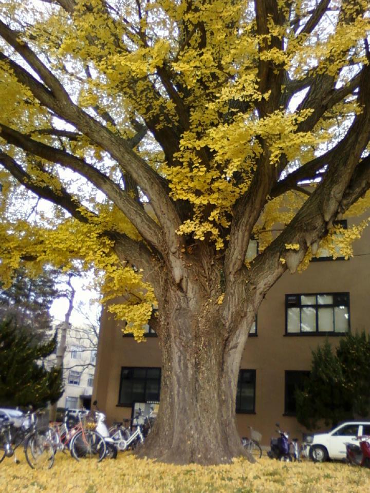 東北大学片平キャンパス構内のイチョウ。巨木です。樹齢200年程だそうです。昭和50年に仙台市保存樹木に指定されました。周囲一面、落ち葉で黄色に染まっています。
