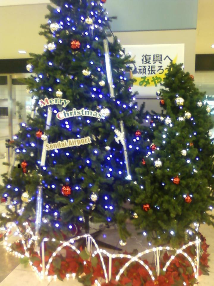 仙台空港一階到着ロビーに飾られたクリスマスイルミネーションです