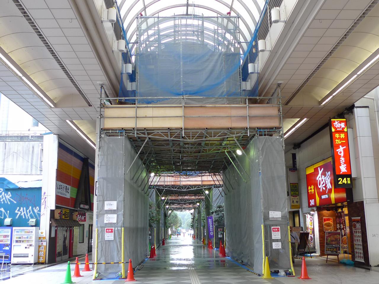 現在、サンモール一番町ではアーケードの改修工事が行われています。