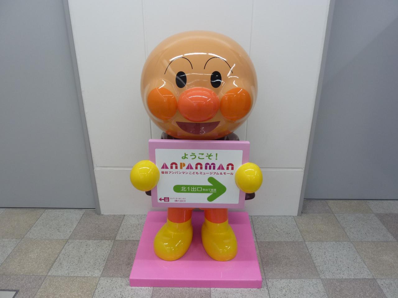 地下鉄東西線宮城野通駅です。仙台アンパンマンこどもミュージアム&モールが近くにあるのでキャラクターたちが迎えてくれます。