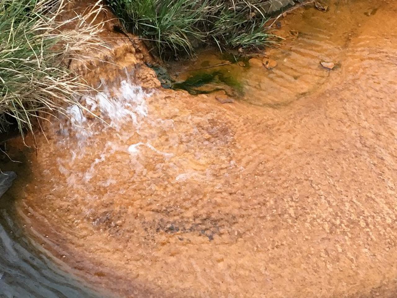 川に沿って歩くと、真っ赤な酸化鉄が流れており、どうやら、山の方からそれは流れ出しているようでした。以前は金山という地名もあったそうで、現在は西多賀や砂押エリアになっています。