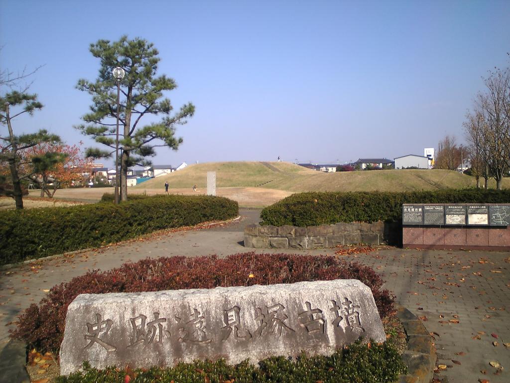 若林区の南小泉遺跡の中に造られた遠見塚古墳です。全長110mの前方後円墳で東北地方3位の規模。古墳の上で気持ちよく!?ギターで弾き語りをしている人がいました。