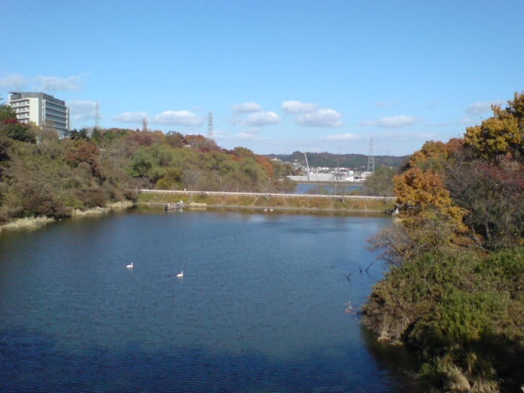 「鶴ヶ谷中央公園」にある「大堤」は、鶴ヶ谷地区の中心をはしる並木通りからの眺めが良いです。「ひょうたん沼」とも呼ばれていますが、手前の沼も奥の沼も、ひょうたんの形にはちょっと見えません。以前は二つの沼が中央で細く繋がっていたのかもしれませんね。