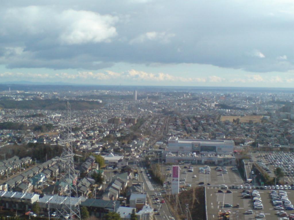仙台大観音の12階から太平洋を眺めました。地上から見るとあんなに高いパークタワー台原(画面中央)も見下ろすことができます。