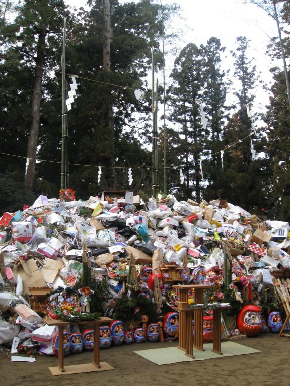大崎八幡宮のどんと祭。山の中には高さ8.8m、重さ1.5tの日本一の門松が