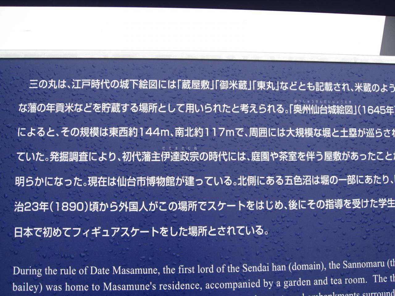 仙台城の堀の一部だった五色沼は、フィギュアスケート発祥の地ということで、記念碑