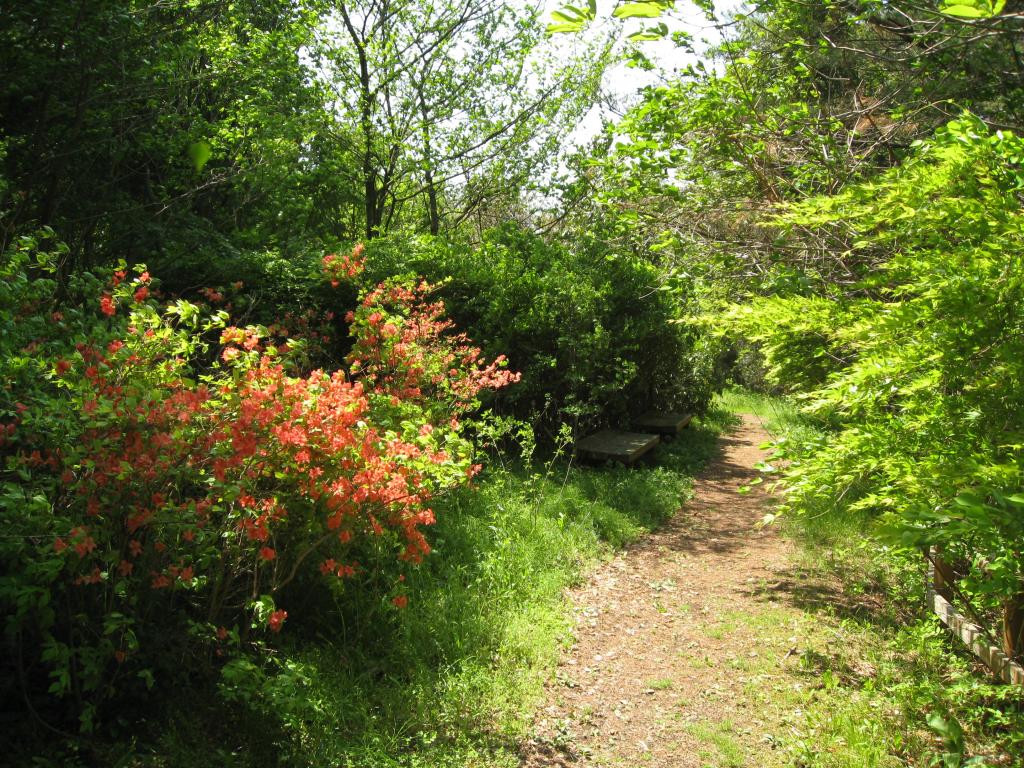 交通公園の奥の三居沢から登っていく遊歩道は、宮教大の奥の青葉の森まで整備されています。距離も長いし、ちょっとした山道なので、ハイキングにはお勧めです。この時期はヤマツツジが多く咲いていました。