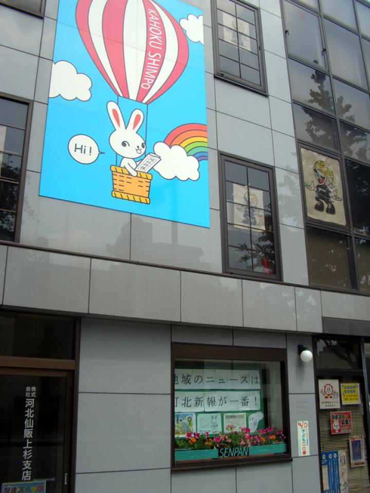 仙台市立上杉山通小学校の真向かいに上杉支店があります。新聞店なので、ショーウインドウもヘンなのですが、お近くにお寄りのときぜひ「みでけさいん」。