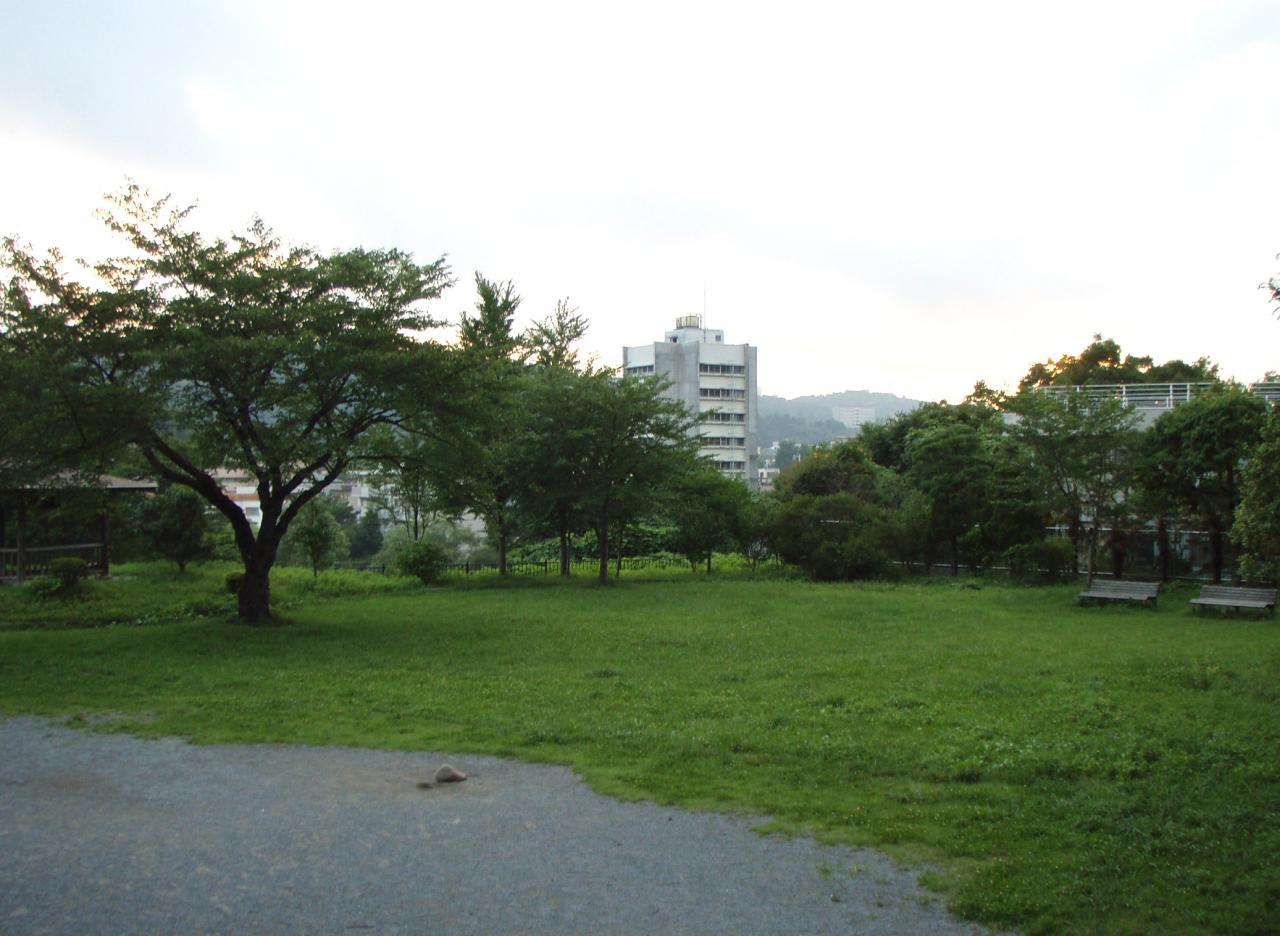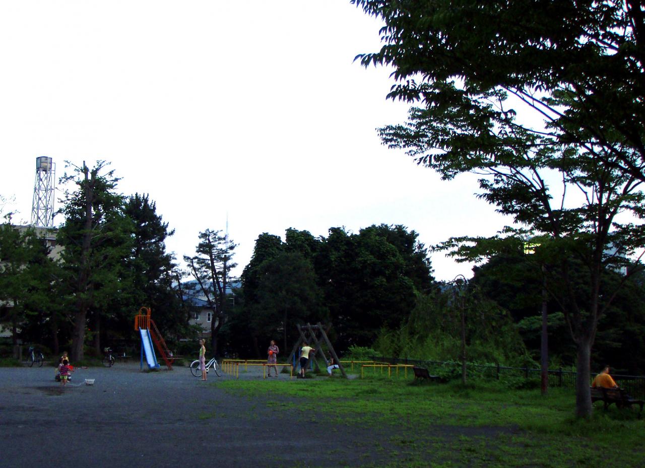 片平市民センターと広瀬川との間に広がる公園。うぐいすやキジの鳴き声も聞こえ、ふと街中にいることを忘れてしまいそうになる。広い公園の中には、遊具で遊ぶ親子連れの姿もあり、備えつけられたベンチでゆっくりくつろぐ姿もあり。