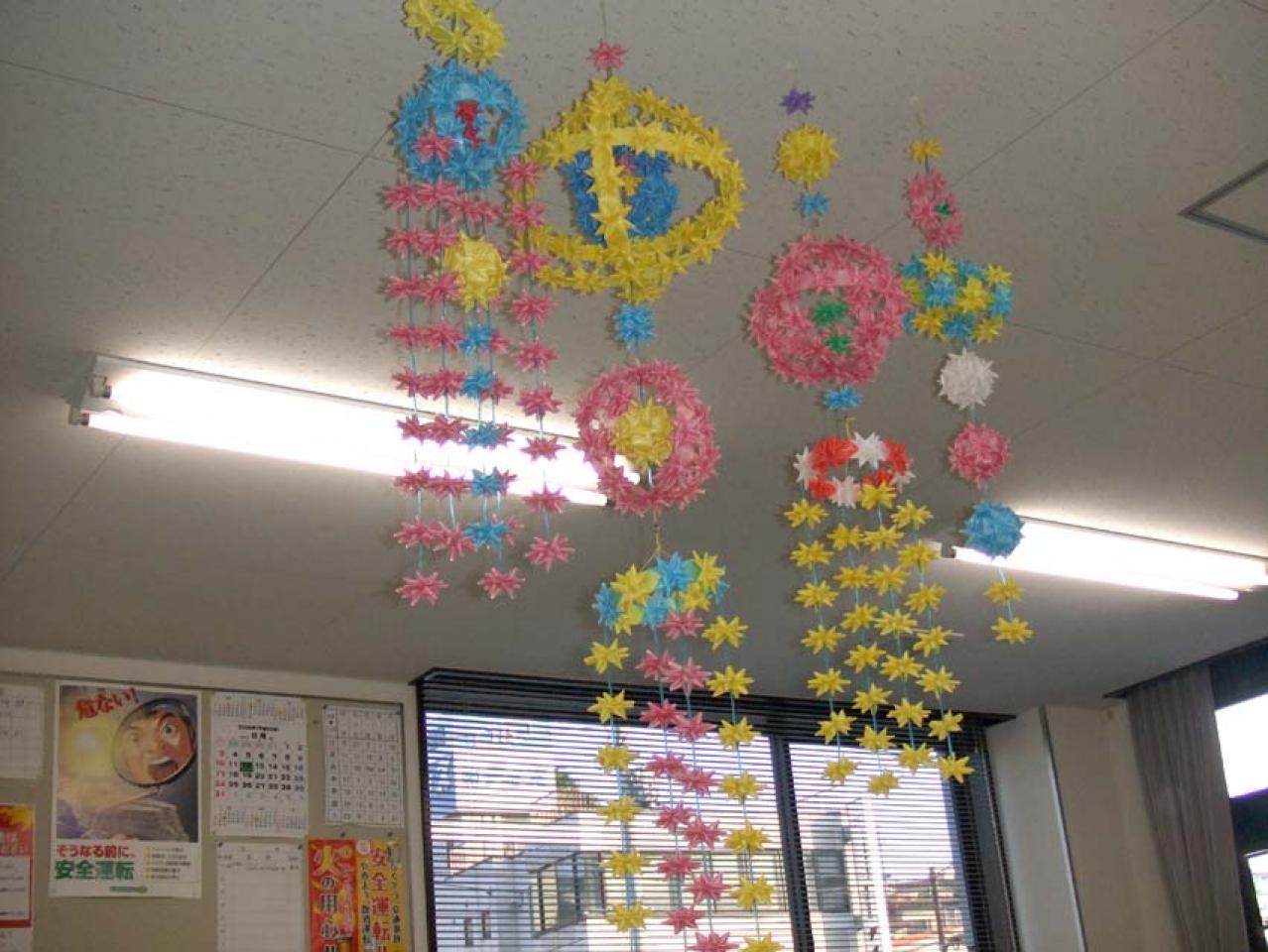 河北仙販台原支店のデリパルさんが、新聞や折込チラシを梱包している使用済みのPPバンドを再利用して作った七夕飾りです。