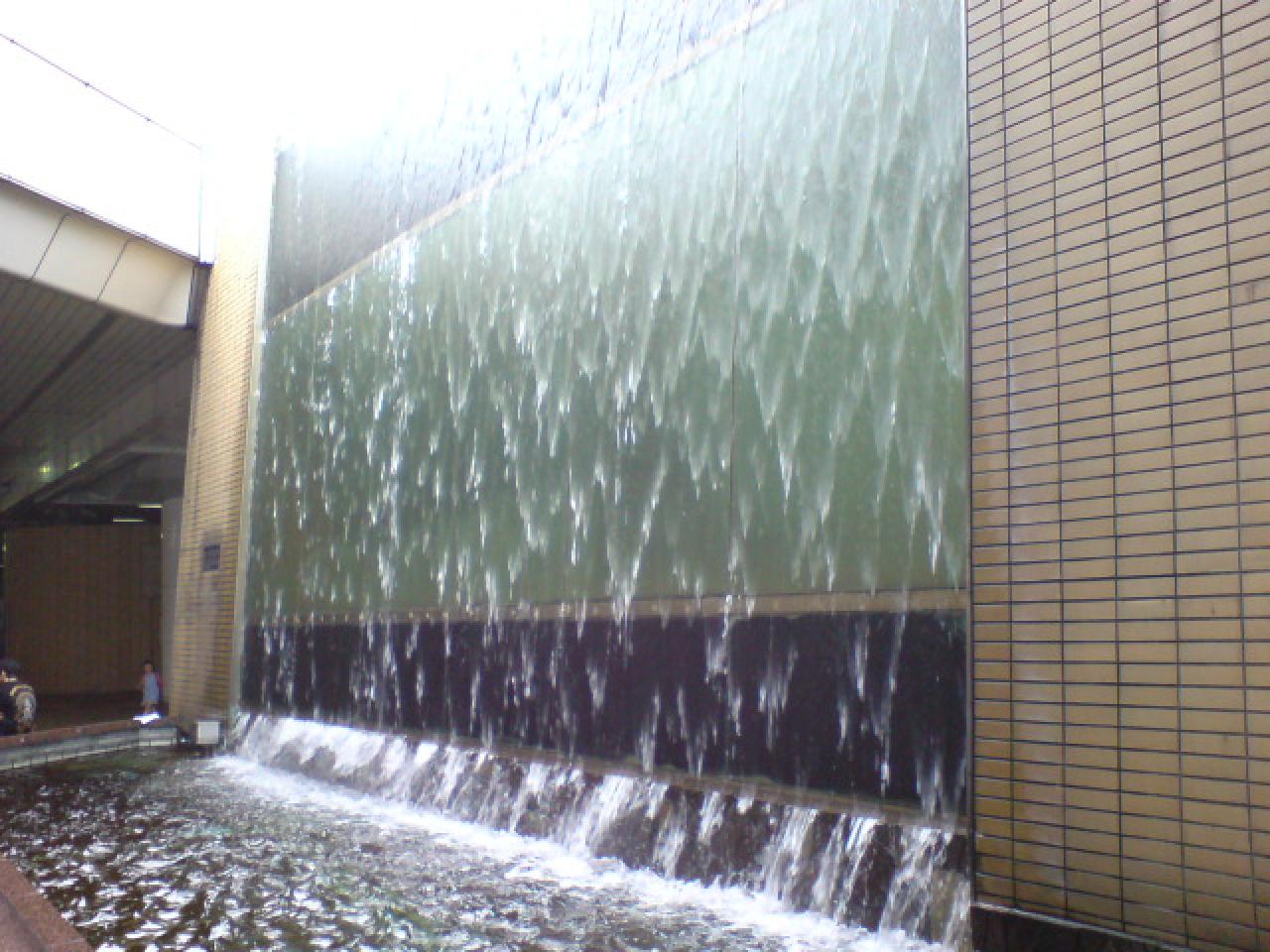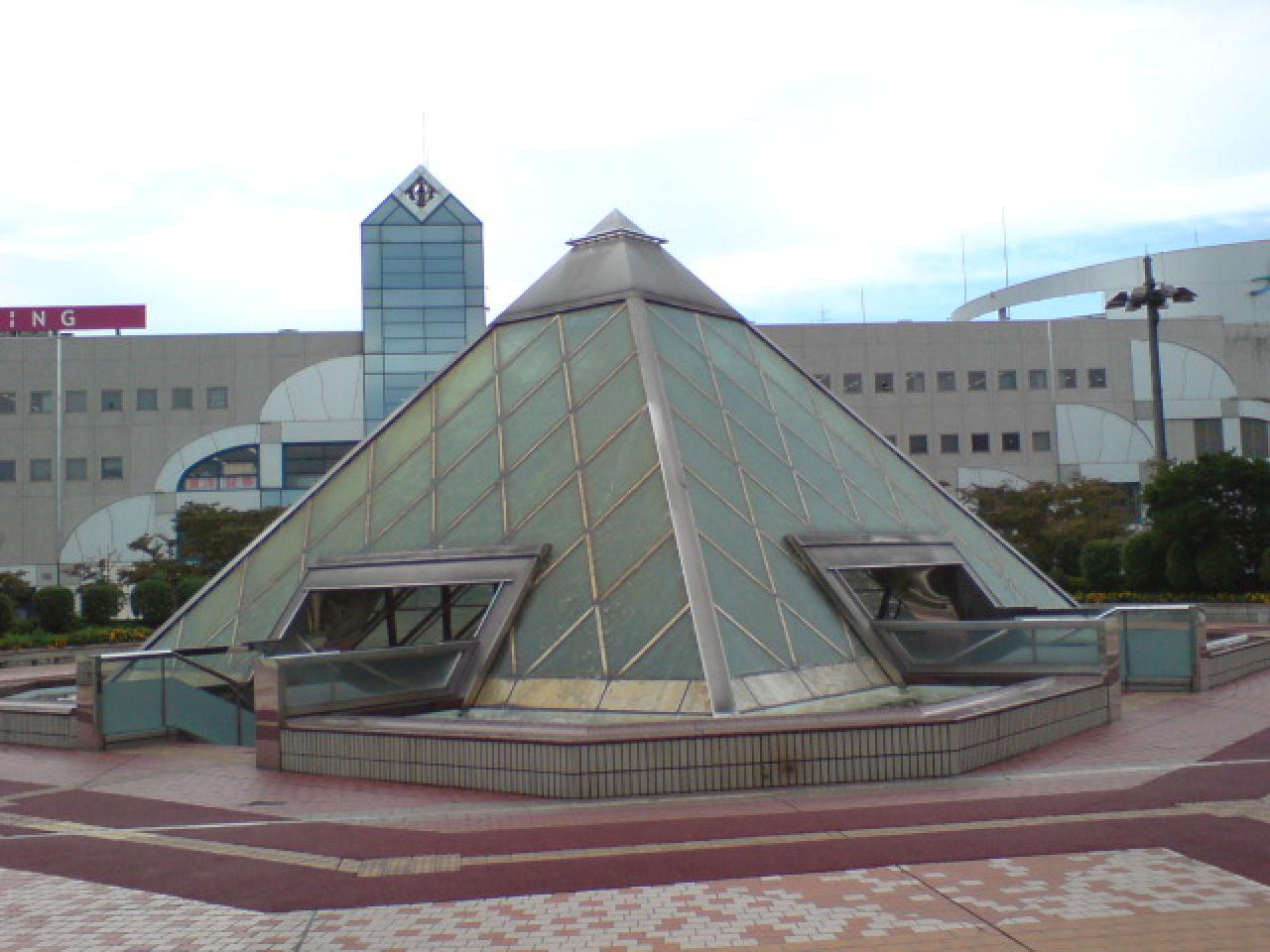 泉区中心部のペデストリアンデッキ、泉中央広場の中央にあるピラミッドです。噴水になっていて上部から流れ出る水は滝となって1Fに流れおちていきます。