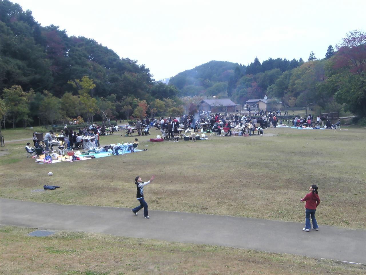 丸田沢堤と三共堤の間にある水の森公園キャンプ場です。今の季節、いも煮会やバーベキューをする人で賑わっています。テントサイト、デイキャンプサイトは一区画、一日500円で利用できます。