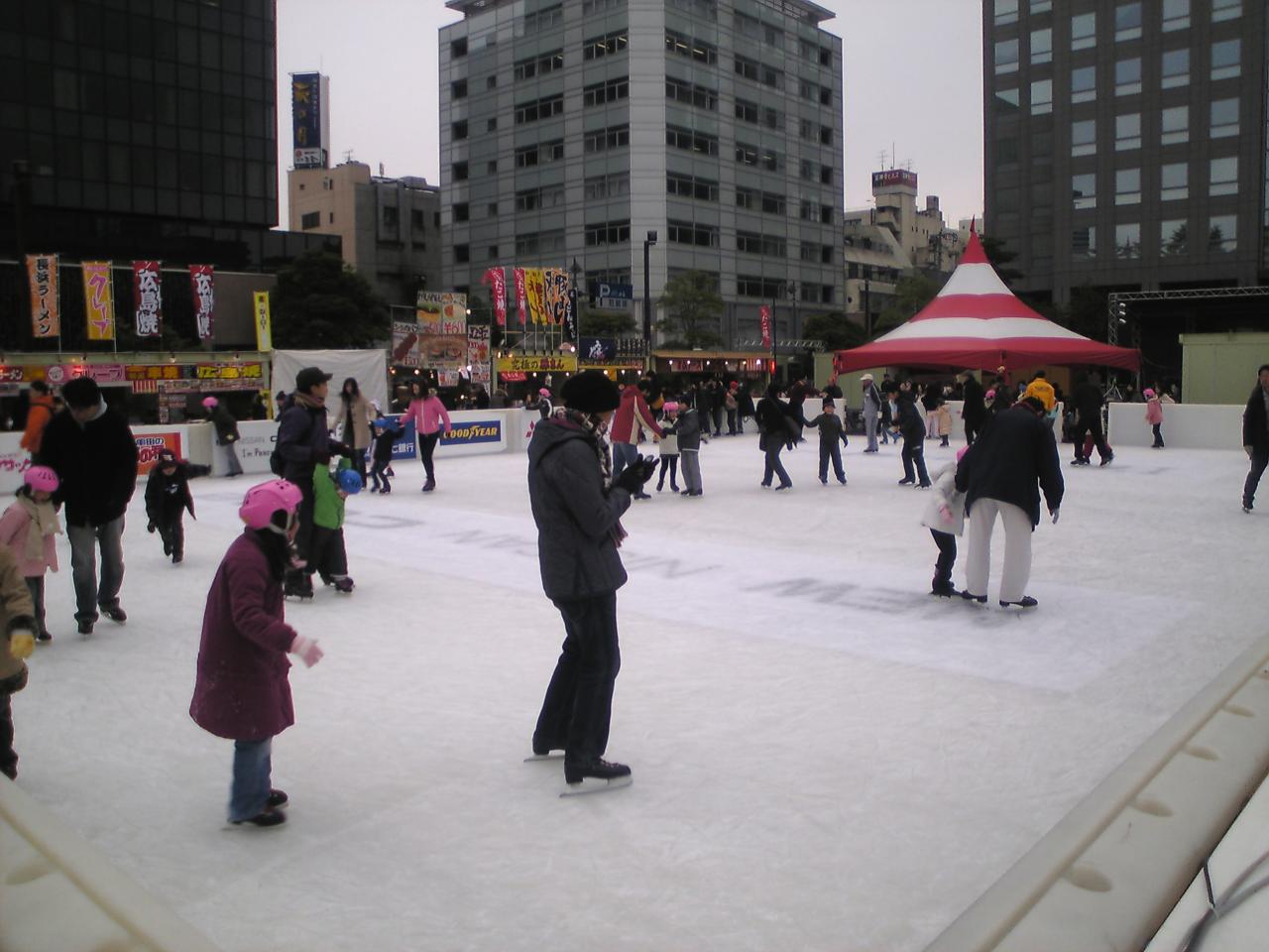 12月25日までの期間限定で市民広場に屋外スケートリンク=せんだいウインターパークが登場。入場は無料。貸靴500円。主催はSENDAI光のページェント実行委員会