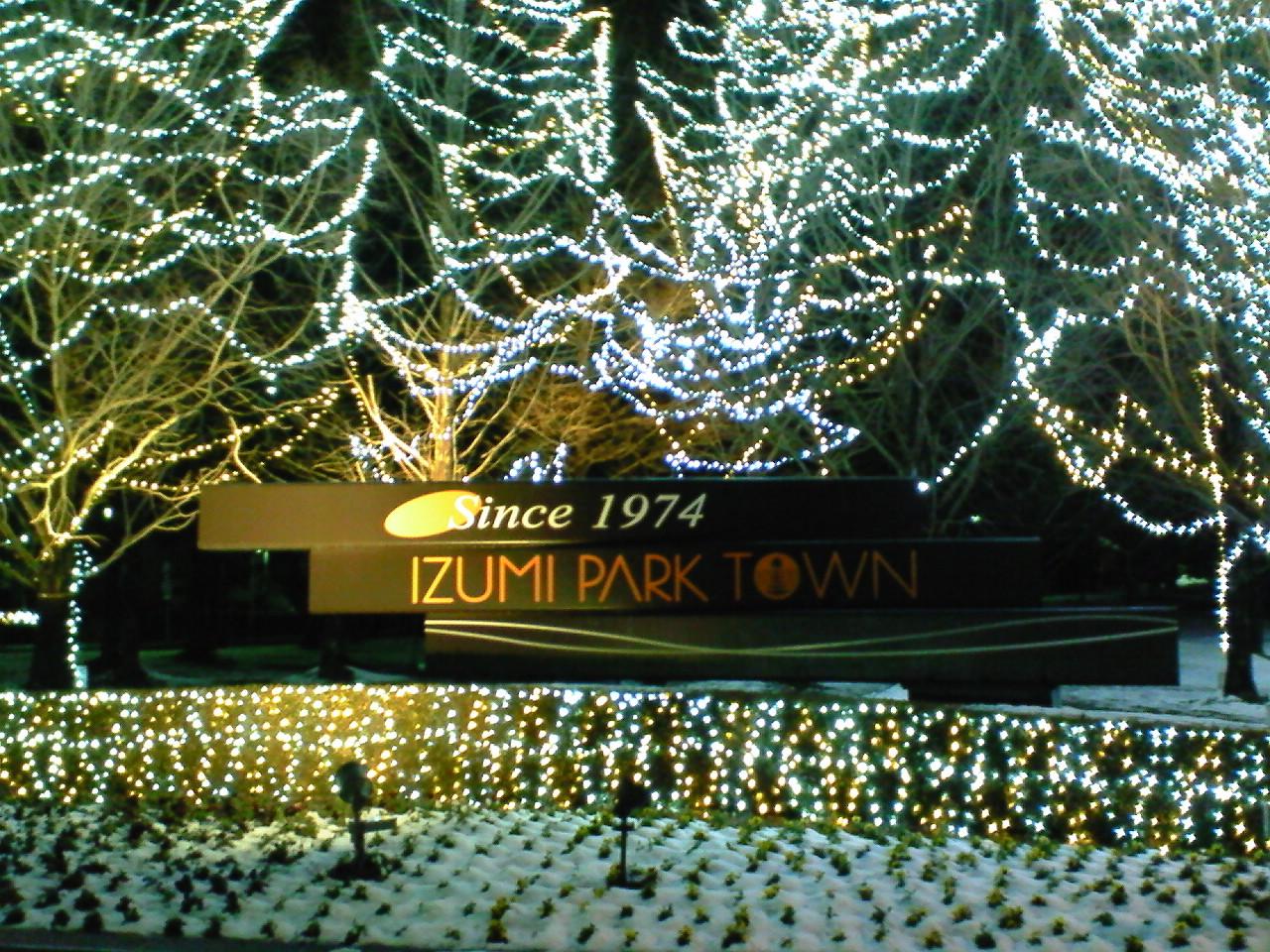 夜の泉パークタウン大通りを飾るイルミネーションです。