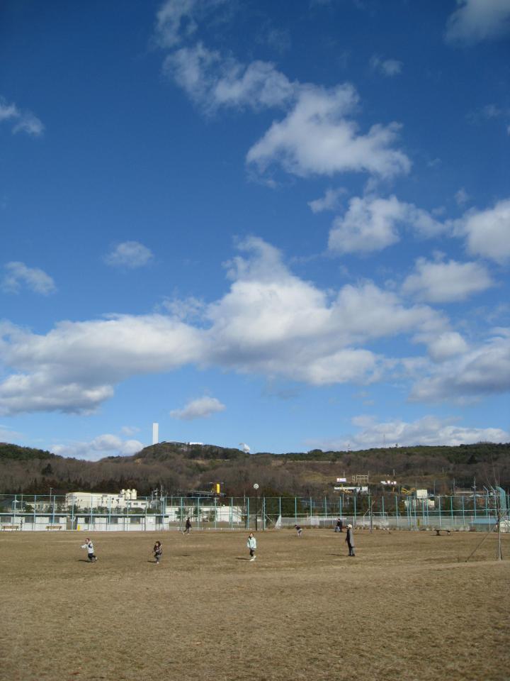 冬なので休日でも遊んでる人はまばらでしたが、天気が良かったので、凧揚げをしている人もいました。
