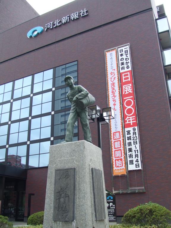 河北新報社前。現在は少年の新聞配達員はめずらしくなってしまいました。昔は私も働く少年でした。あの頃が懐かしいです。