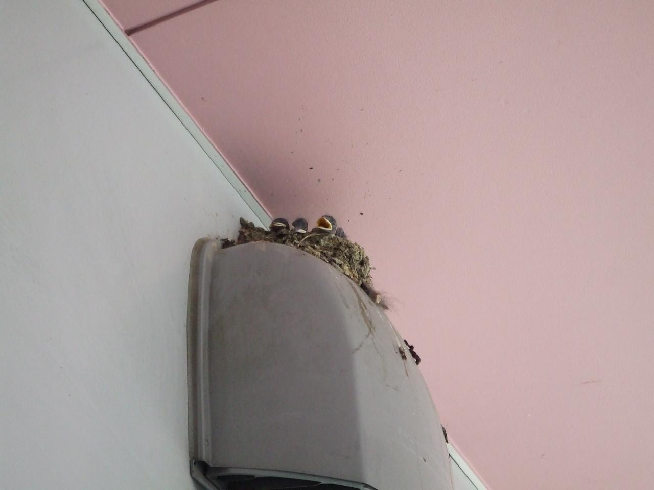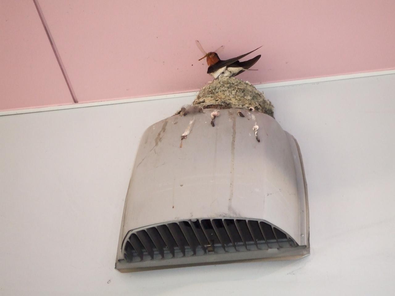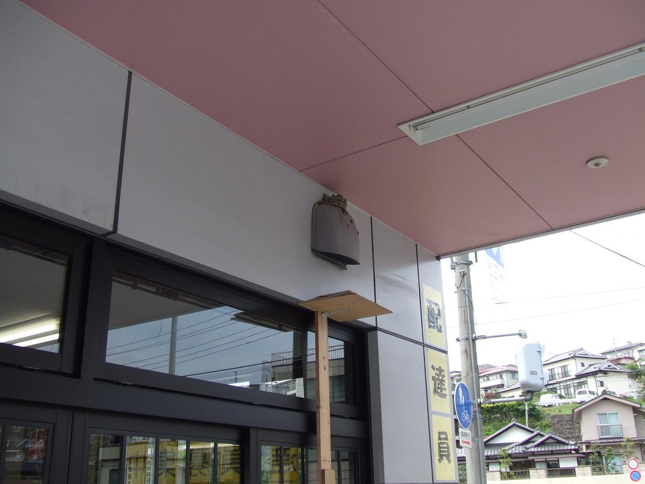 河北仙販台原支店のツバメの巣です。縁起の良い鳥ということで大歓迎されており、従業員のアイドル的存在です。お客様でも足を止めてじっくり見ていかれる方もたびたびいらっしゃいます。ヒナは4羽が確認されています。親ツバメがエサを与えているところを撮りたかったのですが、難しいですね。デリパルさん(配達スタッフ)が作成した糞よけも見事です。無事巣立ってくれるといいですね!