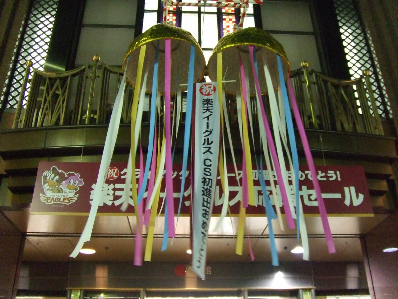 クライマックスシリーズ初進出を3日に決めた楽天イーグルスの応援セールが仙台の百貨店、スーパーで開催されています。さらに上位目指し、みんなで応援しましょう。頑張れイーグルス!