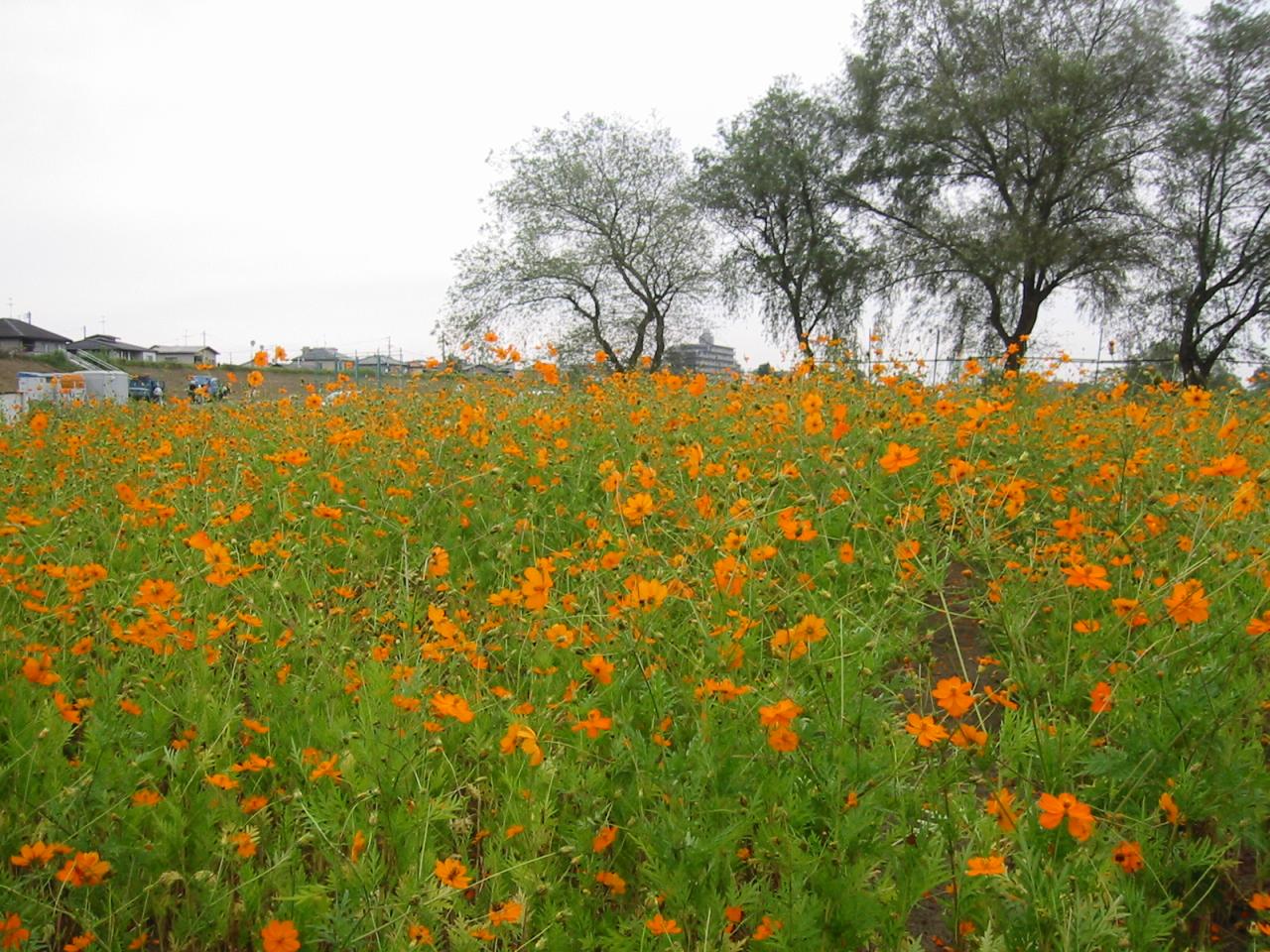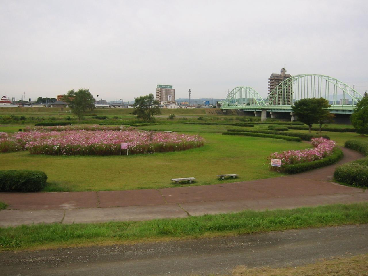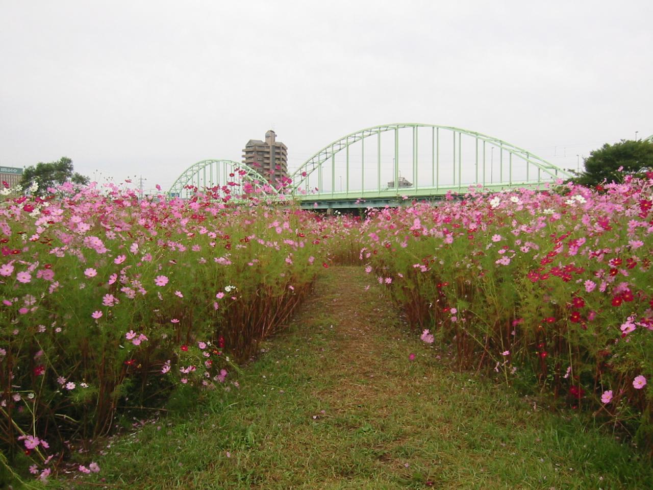 千代大橋付近の河川敷に広がるコスモス畑。