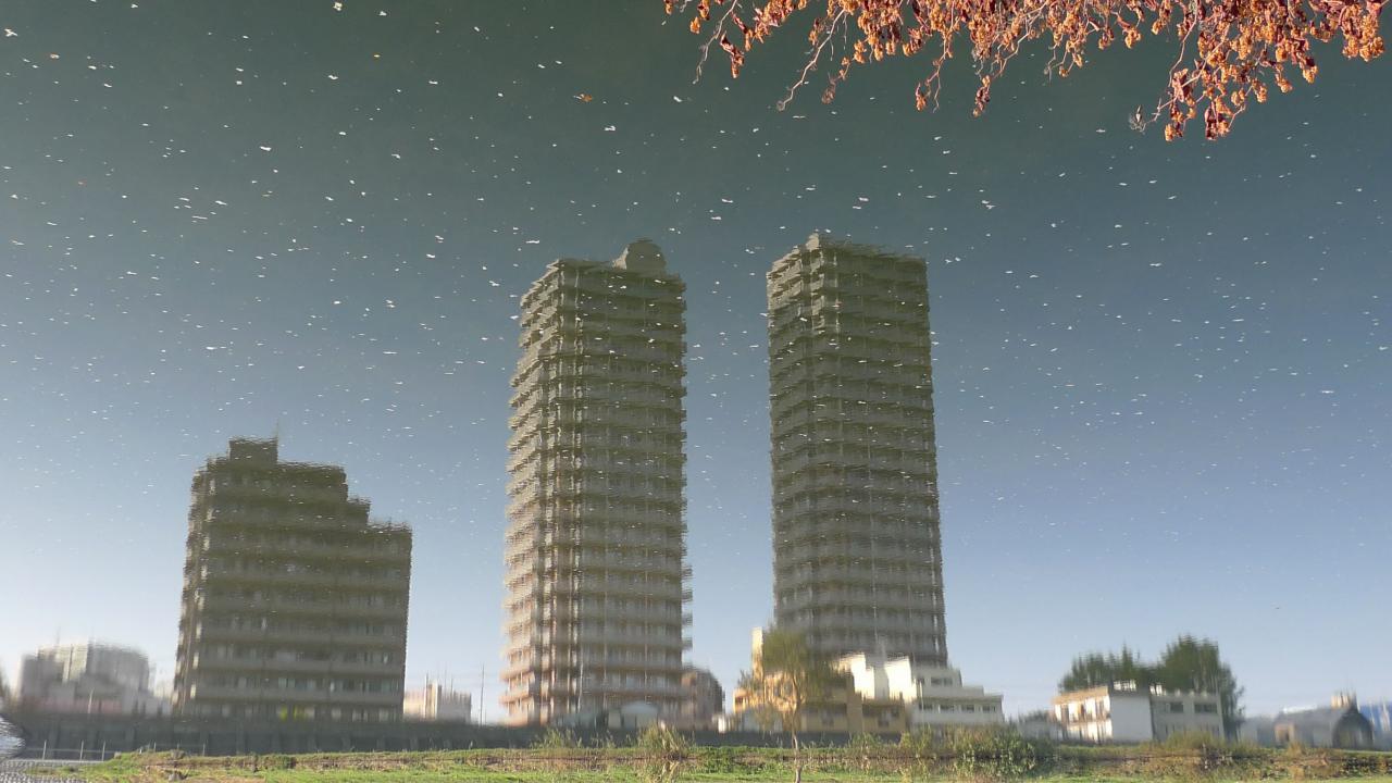 ちなみに、右下の写真は広瀬川に映り込んだツインタワーを180度回転させたものです。