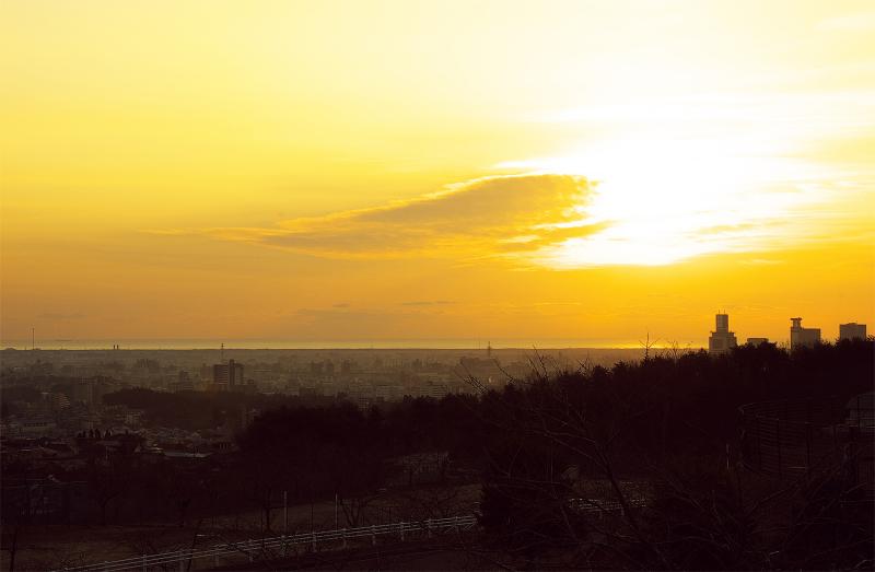 2007元旦の初日をバックに、国見ヶ丘より仙台の街を撮りました。