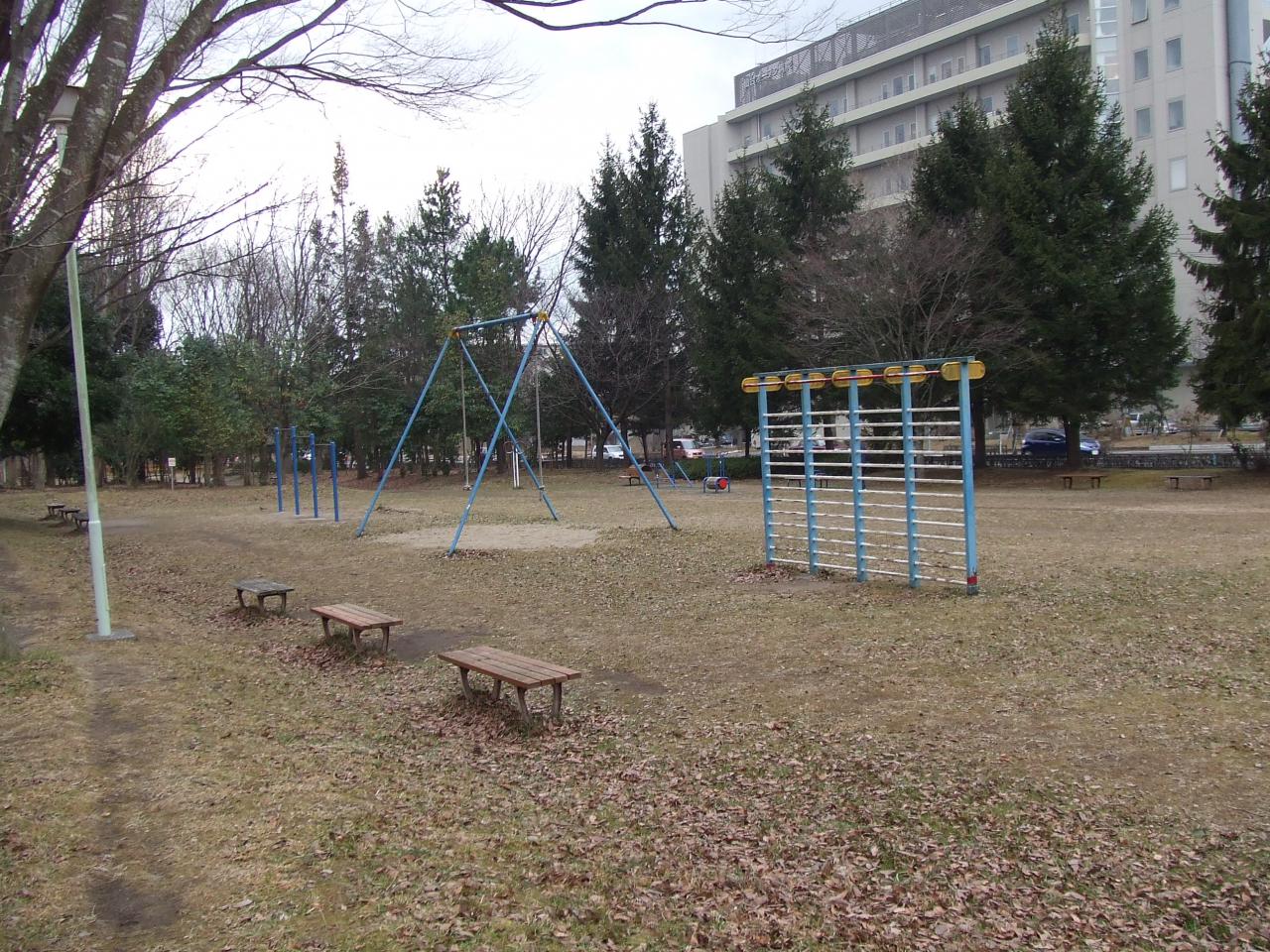 オープン病院方面から見た鶴ヶ谷中央公園。公園内にある大堤が「ひょうたん沼」です。