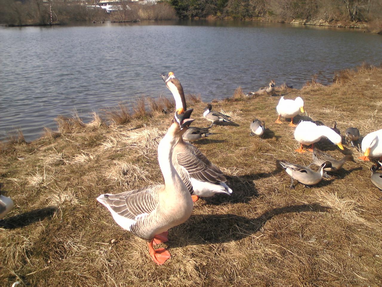 泉区と青葉区の界にある丸田沢西堤です。今の時期、越冬中の白鳥が飛来しているはずですが、最近見たことのない頭にコブがある鳥がいます。木の枝にとまっている鳥は空中に投げたエサを素早く上手にキャッチします♪