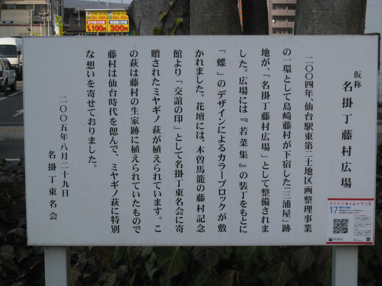 藤村広場は島崎藤村が下宿した三浦屋の跡地だそうです。
