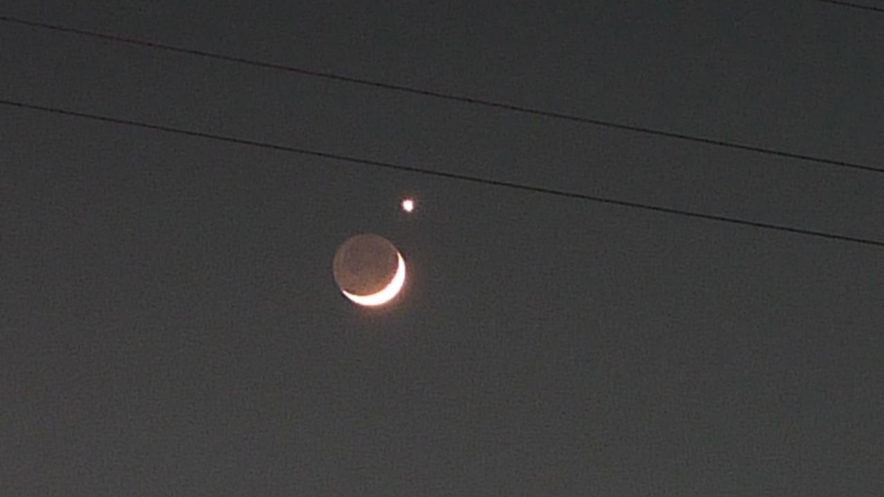 細い月と金星が大接近