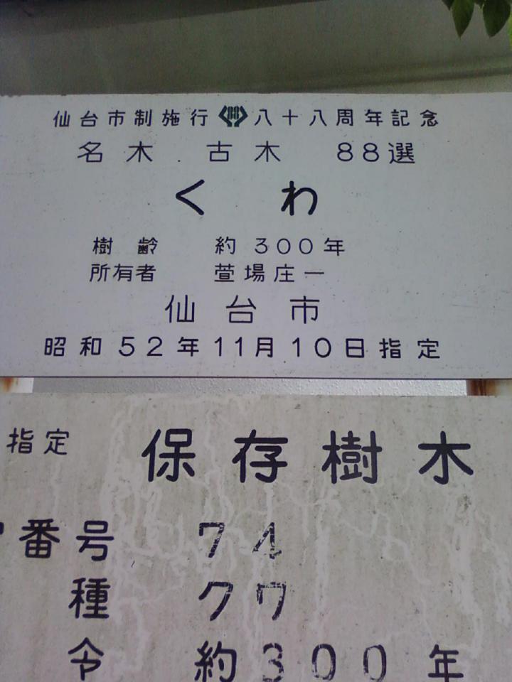 仙台市の保存樹木で、樹齢300年の表示があります。